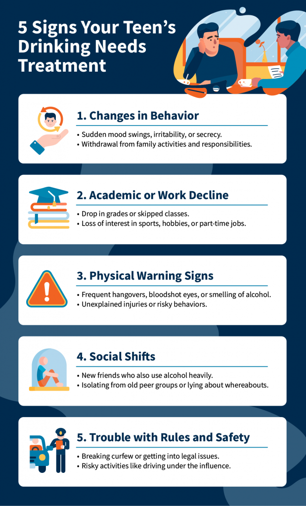 Consider residential care if outpatient therapy hasn’t been effective, or if your teen’s drinking has recently caused them to go to the emergency room to get stabilized. Residential programs offer 24/7 supervision, medical monitoring, and intensive therapy to address both substance use and its underlying causes.